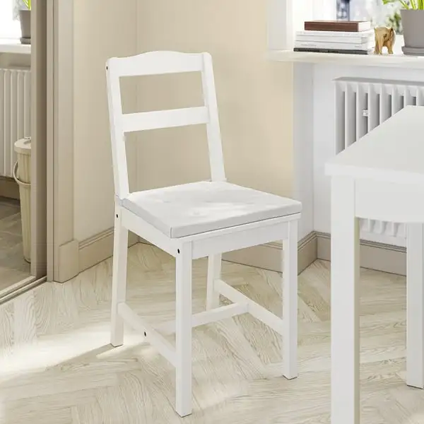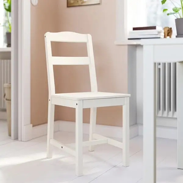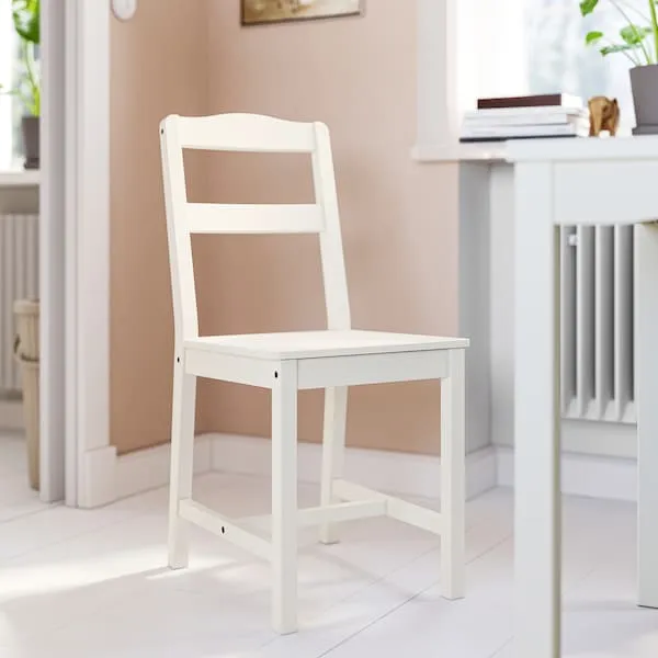 Traditional wooden ladder-back dining chair with distinct look that adds character wherever it goes. Pairs perfectly with HAUGA tables and storage for a coordinated solution in both style and function.