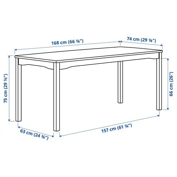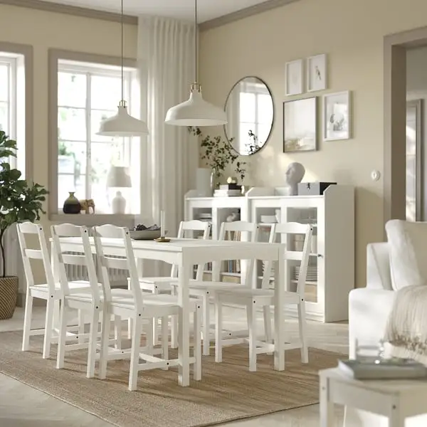 Traditional wooden rectangular table for 6, with distinct look that adds character to your dining area. Pair it with HAUGA chairs and storage for a coordinated solution in both style and function.
