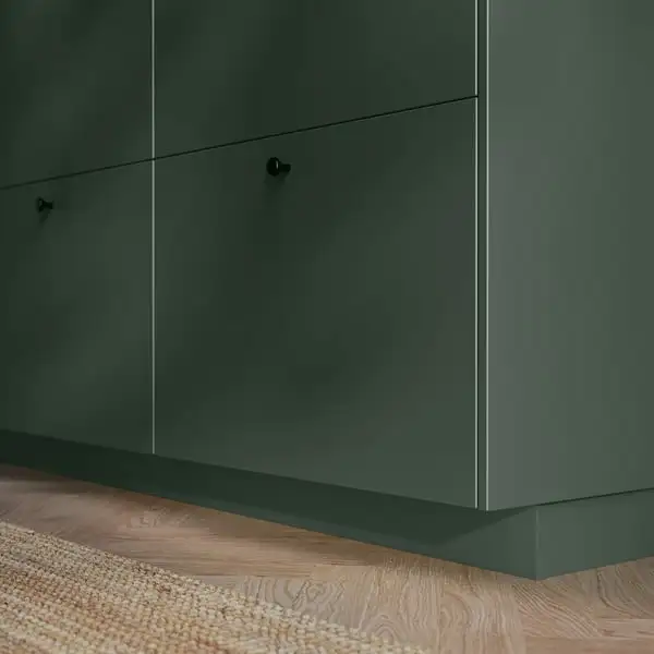 HAVSTORP kitchen fronts in a deep green tone, have clean straight lines and a smooth surface. The plinths give your kitchen a uniform look and enhance the timeless expression.