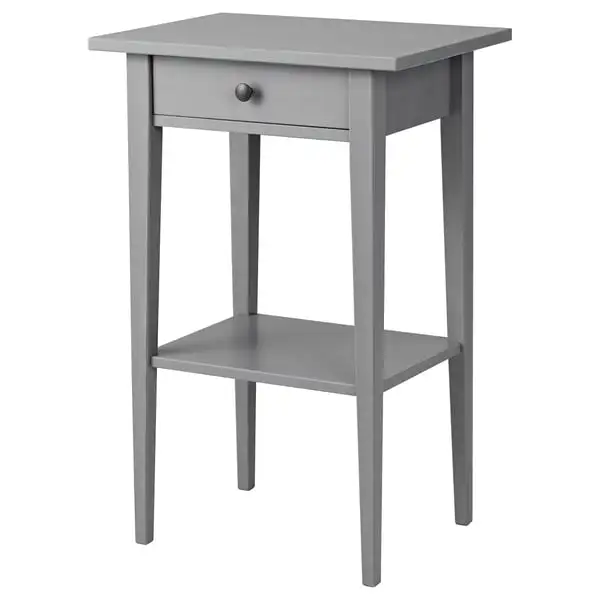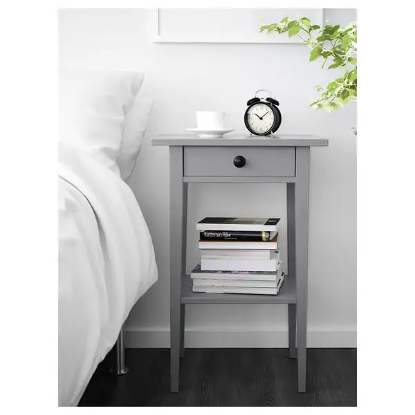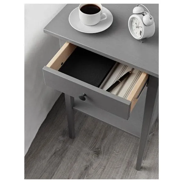 HEMNES Bedside Table - gray treated with biting 46x35 cm. It is made of solid wood, a warm and durable natural material. The drawer, easy to open and close, is equipped with a cash stopper. It can be coordinated with other furniture in the HEMNES series.