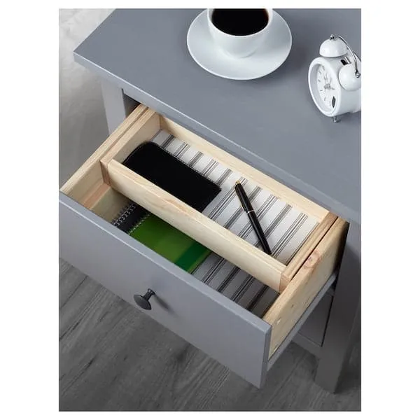 A classic smaller-sized chest of drawers in solid wood, with a traditional look and modern function. Quiet, smooth-running drawers makes it easy to organise your things. Psst! Please attach to the wall.