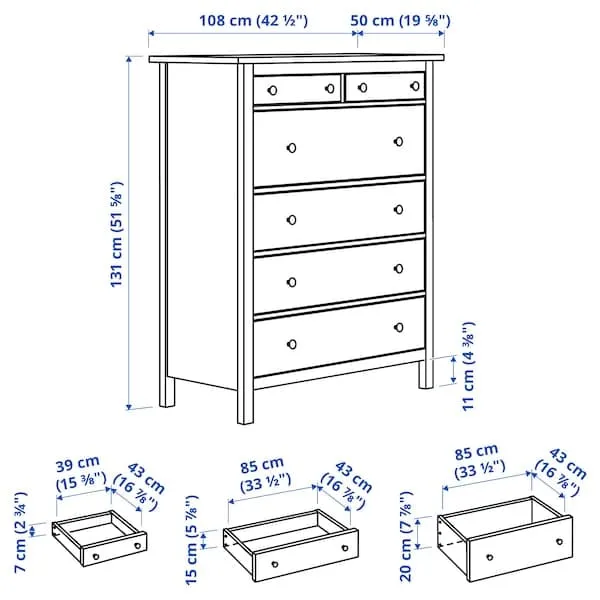 A classic larger-sized chest of drawers in solid wood, with a traditional look and modern function. Quiet, smooth-running drawers make it easy to organise your things. Psst! Please attach to the wall.