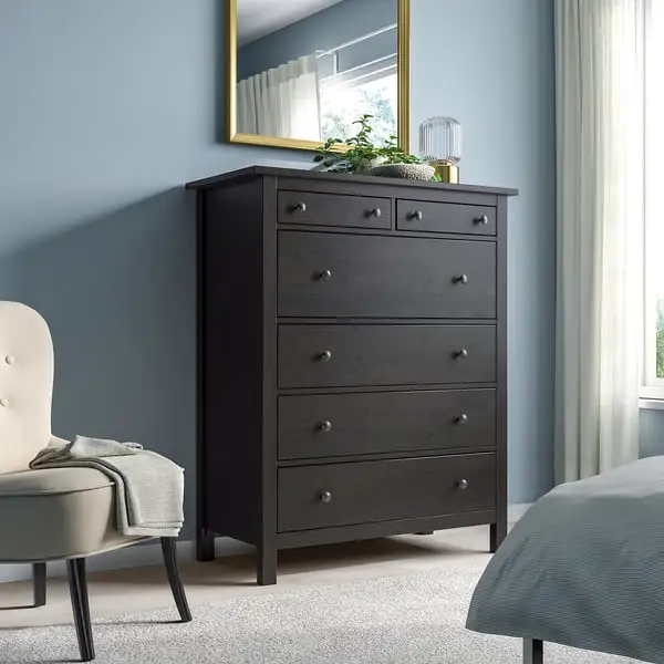 HEMNES chest of 6 drawers, black-brown, 108x131 cm
