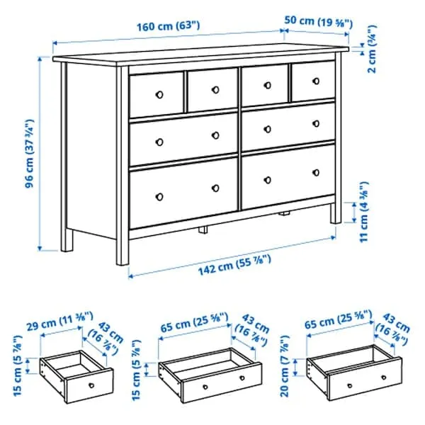 A classic larger-sized chest of drawers in solid wood, with a traditional look and modern function. Quiet, smooth-running drawers make it easy to organise your things. Psst! Please attach to the wall.