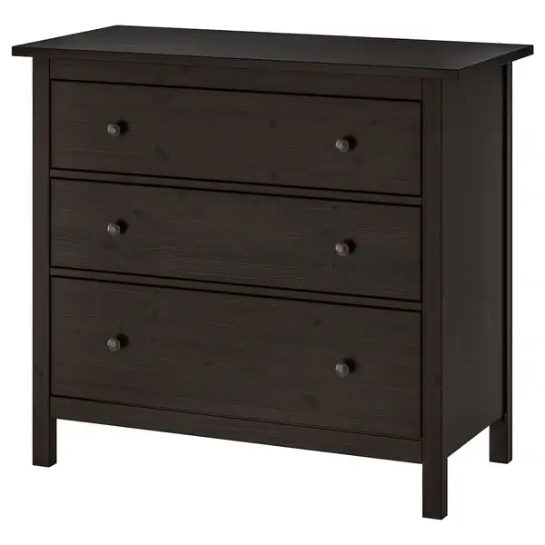 HEMNES Chest of drawers with 3 drawers - brown-black 108x96 cm. The house must be a safe place for the whole family. That's why a safety component is included with which to attach the chest of drawers to the wall. It is made of solid wood, a warm and durable natural material.