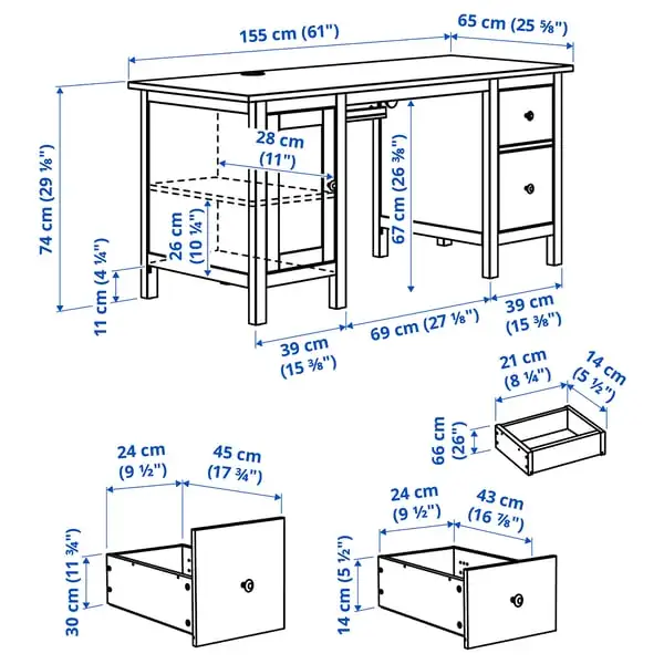 Beauty that lasts – made from solid wood where the table top’s grain adds a vibrant look to the desk. A practical workspace with a finished back where you can mount the drawer unit on the right or left.