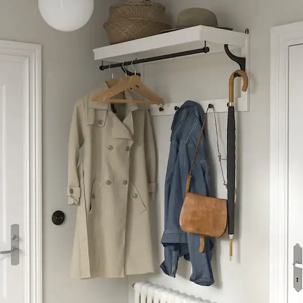- You can hang your coats and jackets on hangers on the clothes rail so they keep their shape.