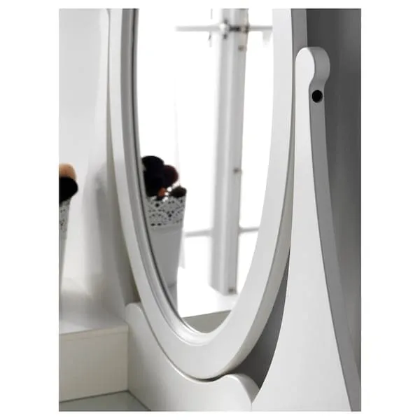 Dressing table or desk? You don’t need to decide – there’s enough space for both make-up, pens and laptop. The soft shapes create a romantic silhouette that becomes the focal point in the room.