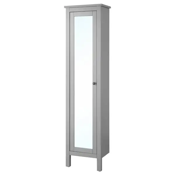 HEMNES high cabinet with mirror door, grey, 49x31x200 cm