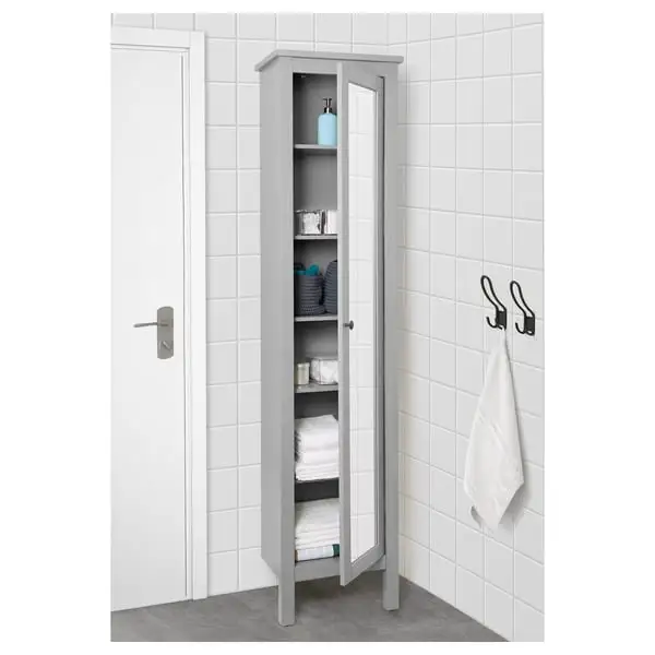 The full-length mirror shows your whole outfit from head to toe. It makes the bathroom appear larger and inside the cabinet you’ll find generous storage space for all your towels and beauty supplies.