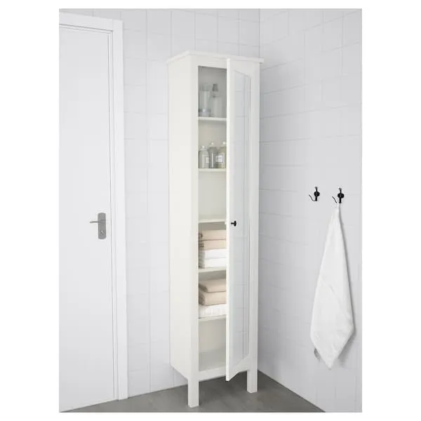 The full-length mirror shows your whole outfit from head to toe. It makes the bathroom appear larger and inside the cabinet you’ll find generous storage space for all your towels and beauty supplies.