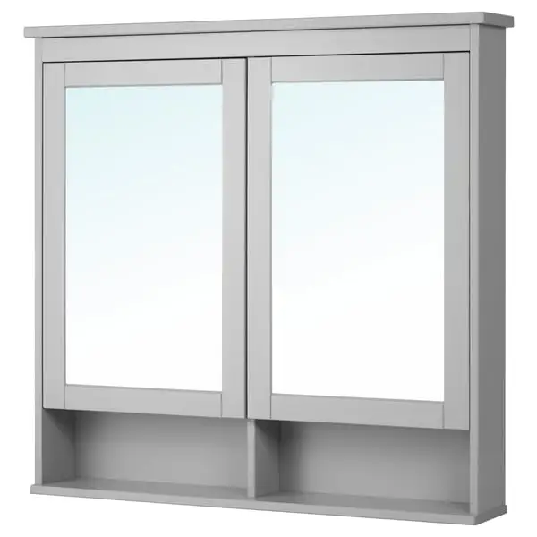 HEMNES mirror cabinet with 2 doors, grey, 103x98x16 cm