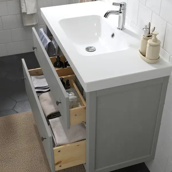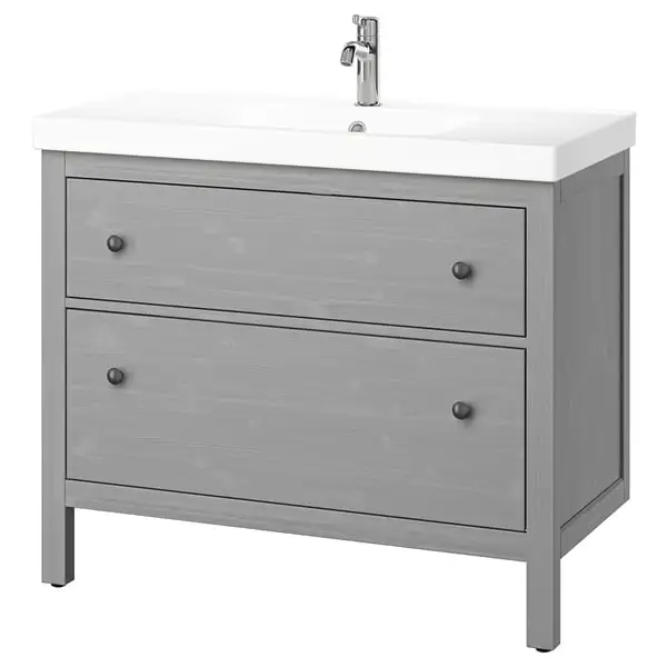 HEMNES / ORRSJÖN wash-stnd w drawers/wash-basin/tap, grey, 102x49x89 cm