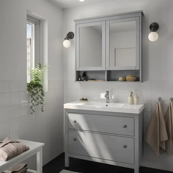 A crafted Scandinavian expression with clean lines combined with smooth-running drawers and a water-saving mixer tap. The grey finish feels warm and timeless.