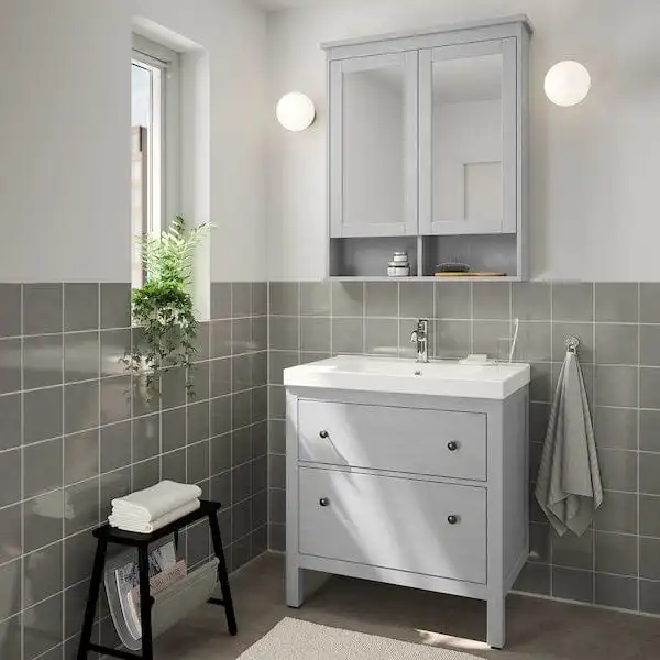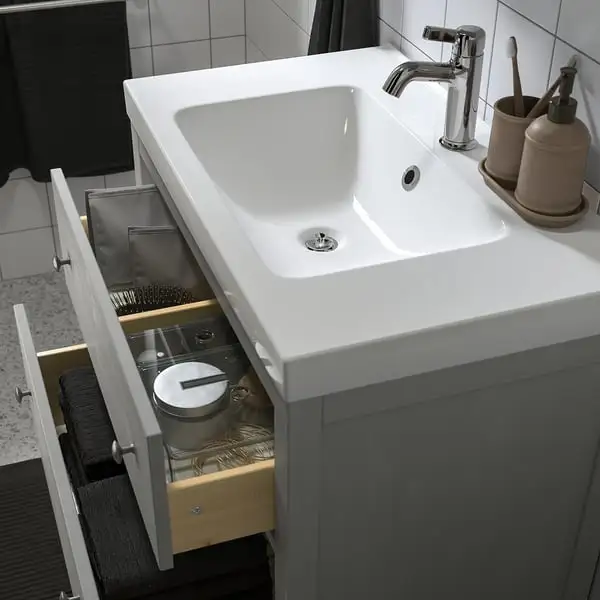 HEMNES / ORRSJÖN wash-stnd w drawers/wash-basin/tap, grey, 82x49x89 cm