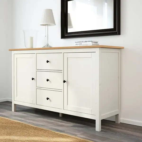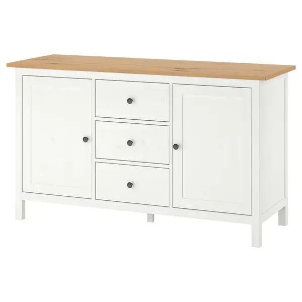 Store the dinnerware, set aside serving dishes and display your favourite things – a sideboard has many uses. This one is made of solid pine and goes great with other furniture in the HEMNES series.