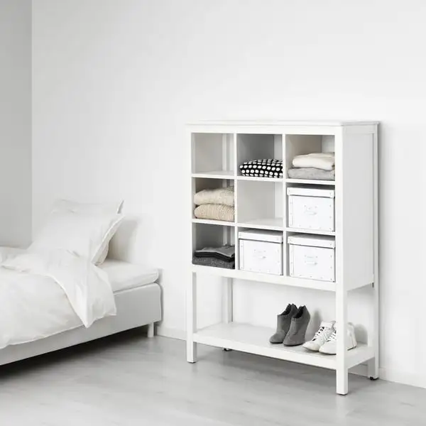 A classic storage unit in solid wood, combining a traditional look with modern function. Open storage for shoes, bags and other things you want to have easily accessible when you're running out the door.