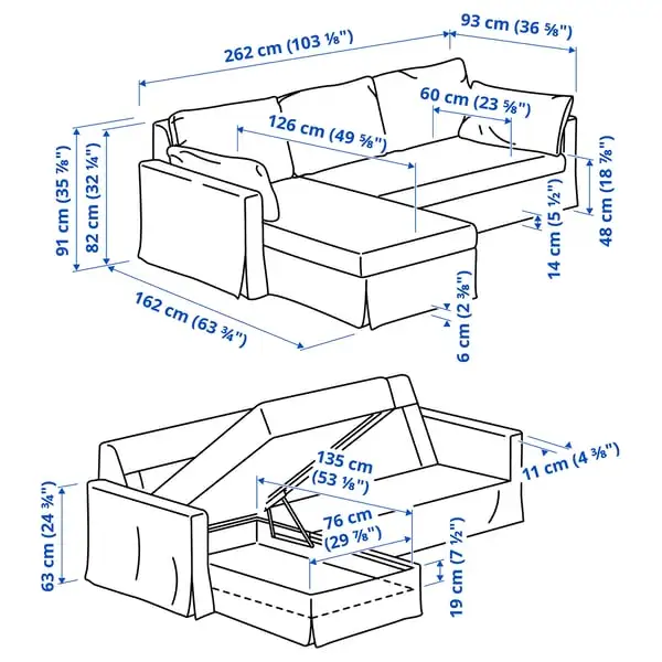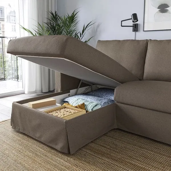 HYLTARP is an inviting family sofa where everyone wants to spend lots of time. This sofa is very comfy, has a clean look that is pleasing on the eye – and a generous storage space in the chaise longue.