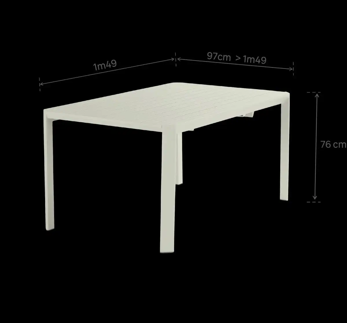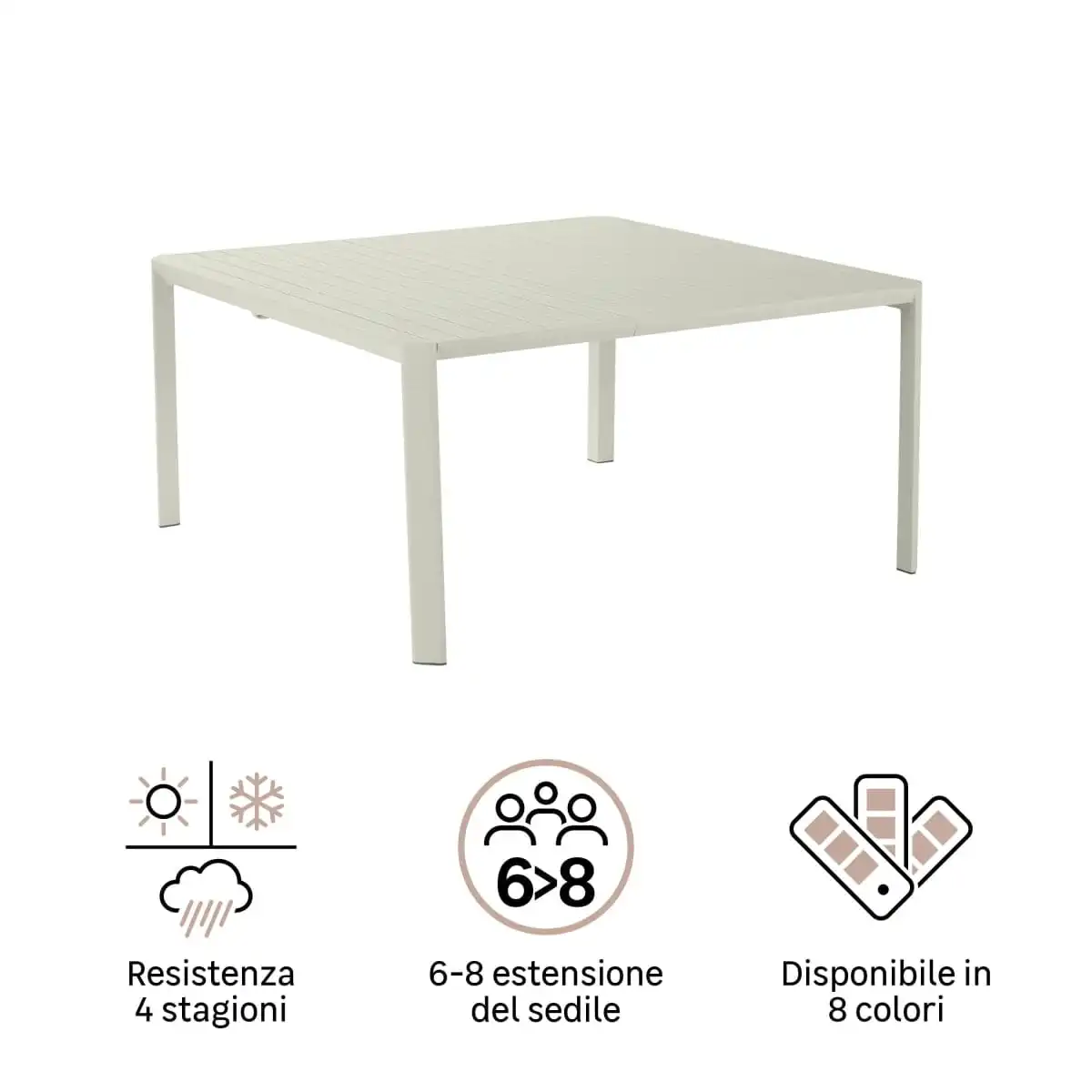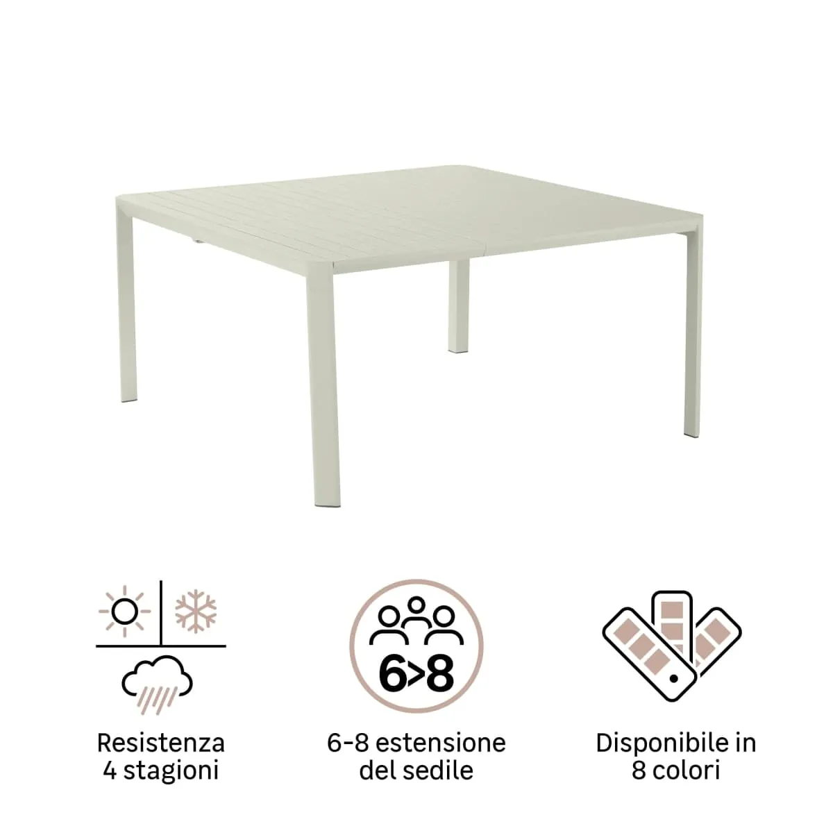Idaho NATERIAL beige aluminum extending garden table for 6-8 people 97/149x149cmIdeal for 8/10 peopleThe table is made of aluminum: making it lightweight yet durable. Its extension, hidden under the top, allows you to change from a rectangular table for 6 people to a square table for 8 people