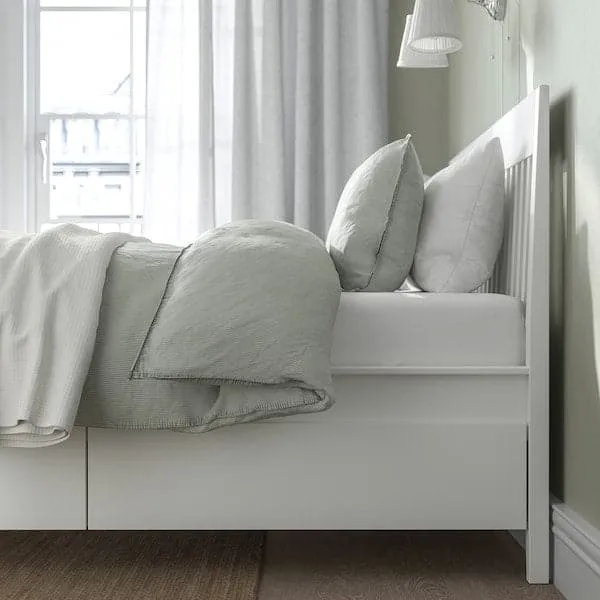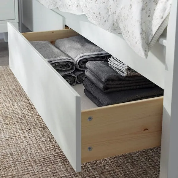 IDANÄS bed frame with storage is both eyecatching and practical. The built-in drawers make use of the space under your bed, and are also soft-closing. The timeless design is easy to love for a long time.