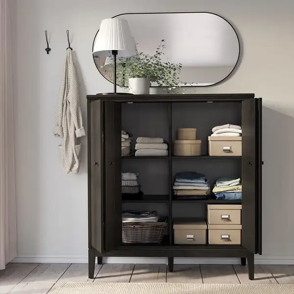 IDANÄS series combines timeless design with modern functionality. With its clever folding doors shut, the cabinet adds elegance to your home. Ideal for storing clothes, table cloths and other small items.