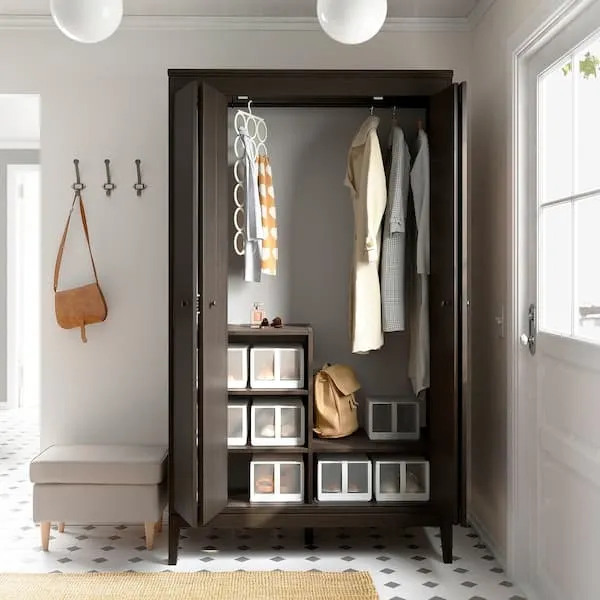 Timeless design with modern functionality. IDANÄS wardrobe has bifolding doors to save floor space and an adjustable shelf to help customise your storage. A wardrobe that is easy to love for many years.