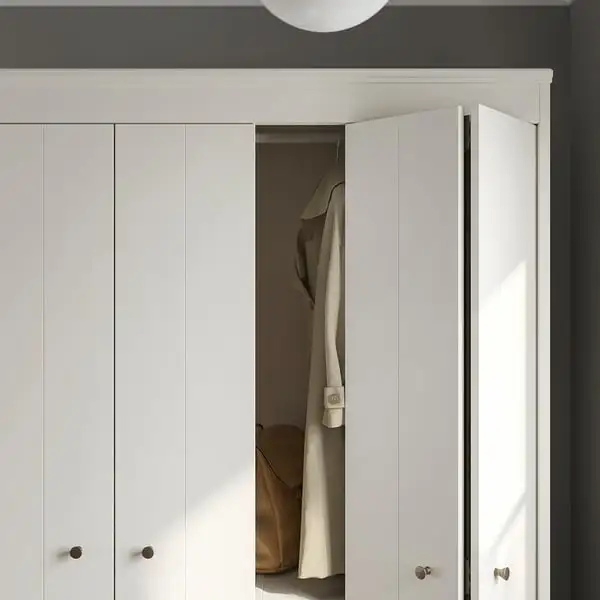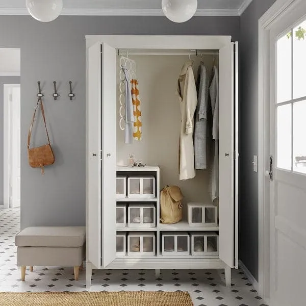 Timeless design with modern functionality. IDANÄS wardrobe has bifolding doors to save floor space and an adjustable shelf to help customise your storage. A wardrobe that is easy to love for many years.