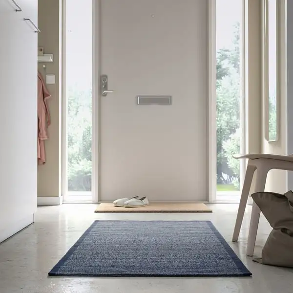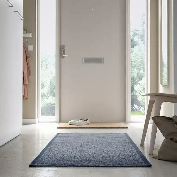 Add a fresh and welcoming feel to your home. This cotton rug has a calming shade of dark blue with hints of white. Pair it with IDROTTSPLATS door mat for a perfectly coordinated hallway.