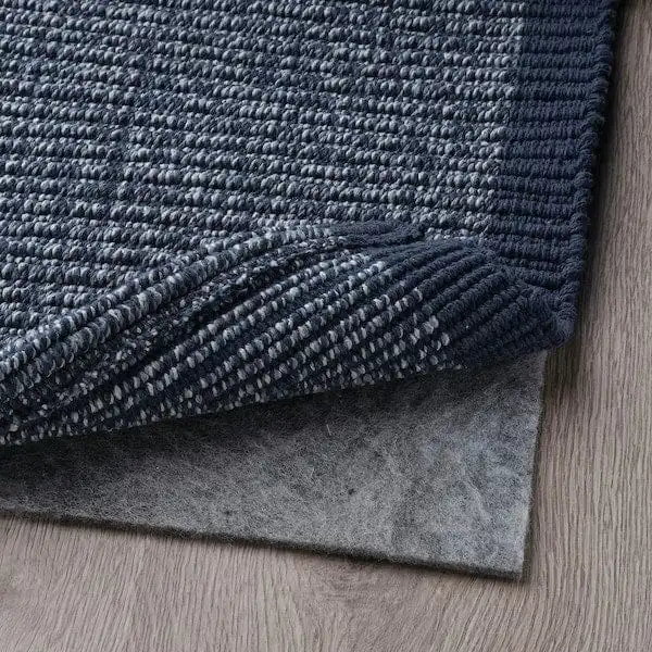 Add a fresh and welcoming feel to your home. This cotton rug has a calming shade of dark blue with hints of white. Pair it with IDROTTSPLATS door mat for a perfectly coordinated hallway.