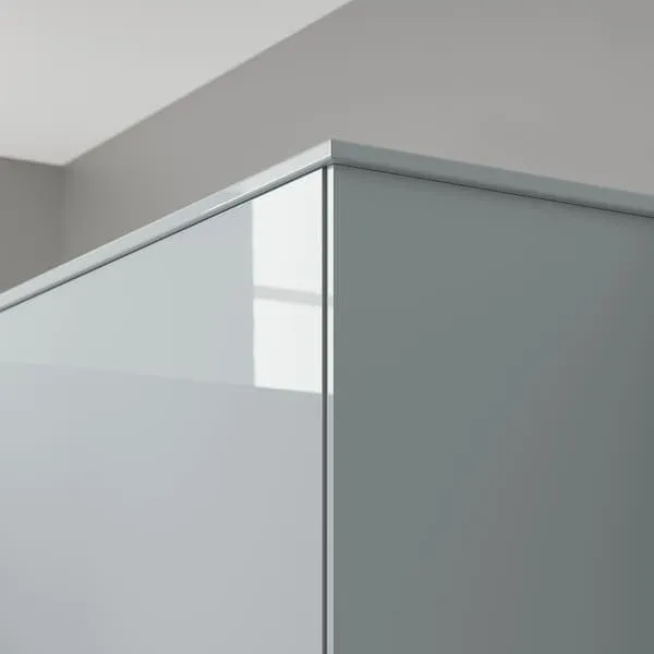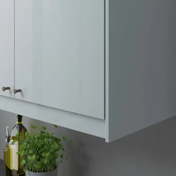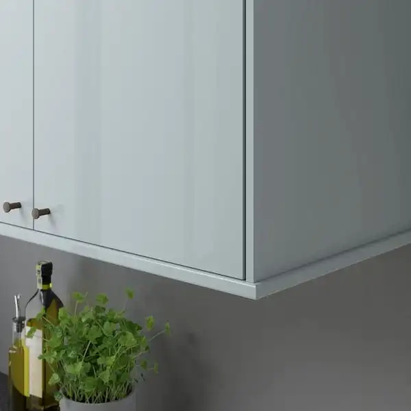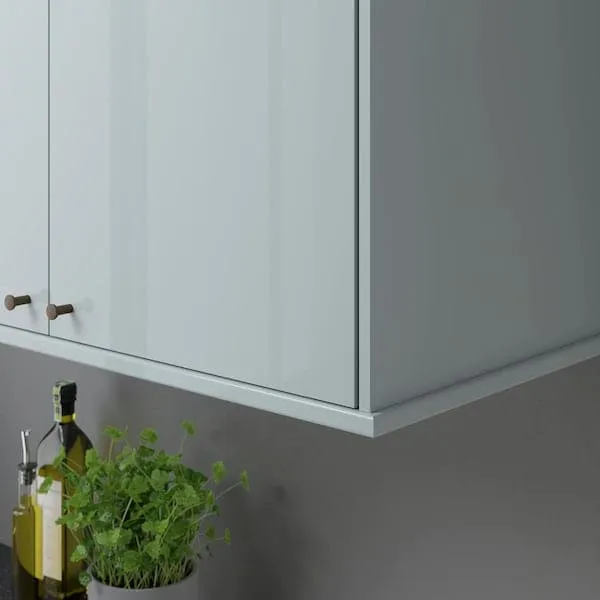 KALLARP series in high-gloss grey-blue offer an ultra-modern feel. This deco strip gives your kitchen a complete look and can also be used to hide cords and lighting under wall cabinets.