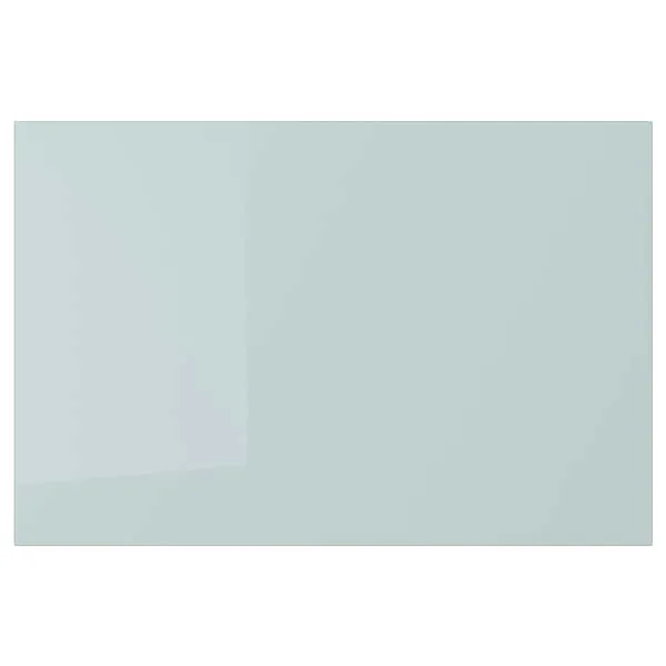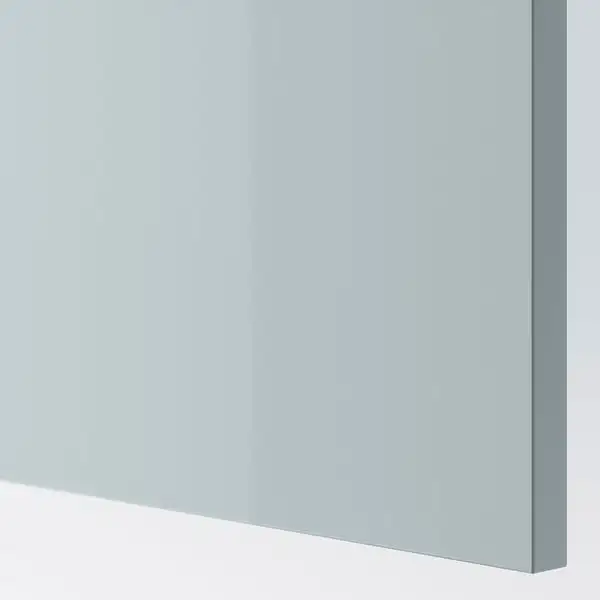 KALLARP fronts in high-gloss grey-blue have an ultra-modern feel and are spot on for everyday life in the kitchen. Made partly from recycled materials at factories powered solely with renewable sources.