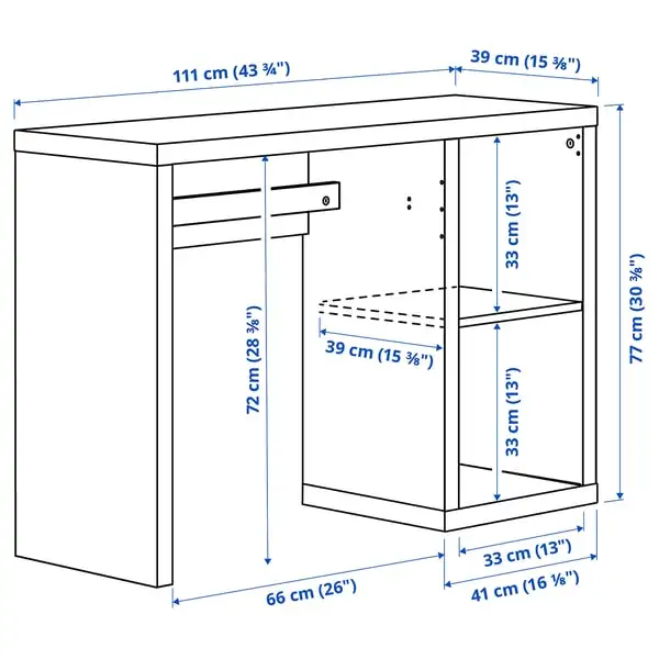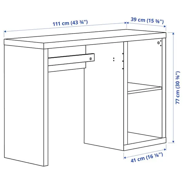 Shallow desk with a timeless expression where the smart design under the table top hides your cables. Easy to personalise by adding door, boxes or inserts from the KALLAX series.