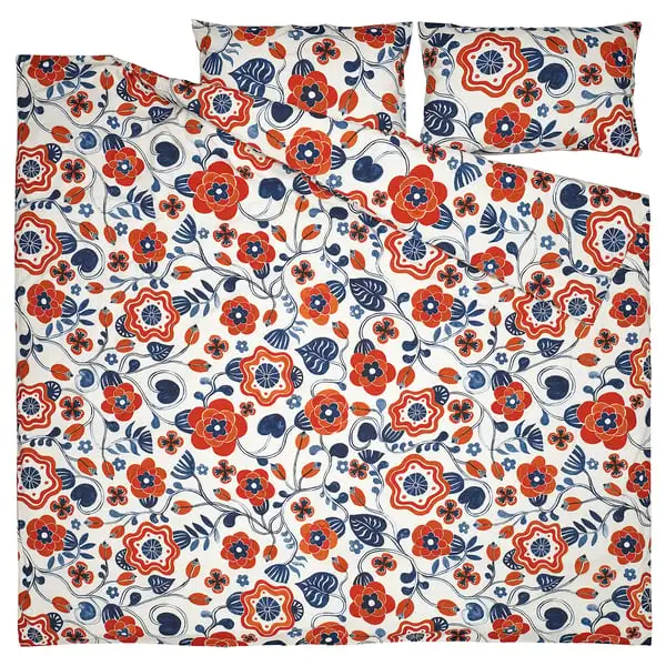 KANONVISKA duvet cover set features a hand-painted design inspired by nature and Swedish folklore, adding a warm, cheerful vibe to your room. The soft cotton/viscose blend breathes and has a fine sheen.