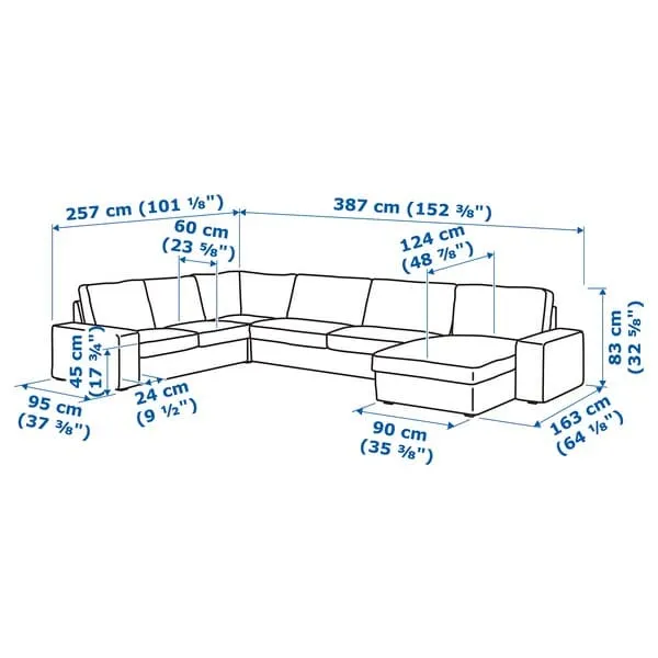 KIVIK corner sofa, 6-seat w chaise longue, Gunnared blue, 257x83x163 cm