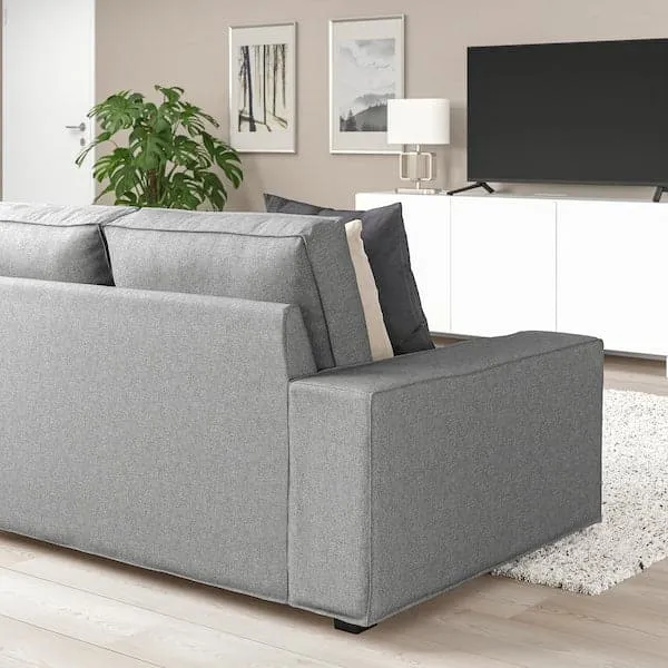 Cuddle up in the comfortable KIVIK sofa. The generous size, low armrests and pocket springs with foam that adapts to the body invites you and your guests to many hours of socialising and relaxation.