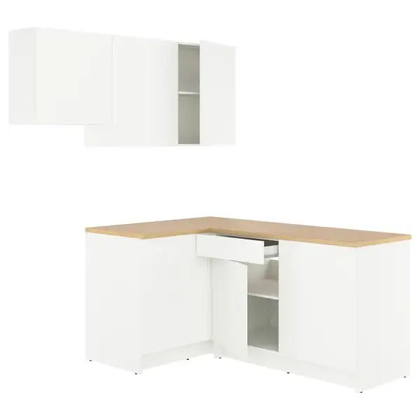 With zones for different activities, and everything close at hand, this L-shaped kitchen is easy to navigate. The corner area creates extra depth to prepare food as well as roomy storage.