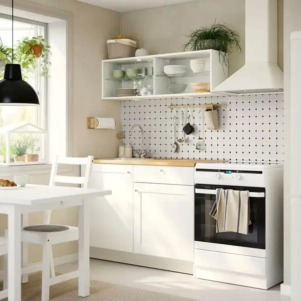 When you love to show your things and have them within reach. This space-wise kitchen offers a personal atmosphere, sufficient workspace and just enough storage in cabinets with shelves and drawers.