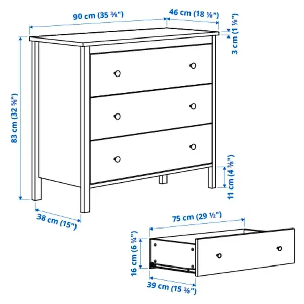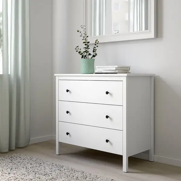 A simple, functional chest of drawers that goes with any decor, in a bedroom or wherever you place it. There’s room for both your favourite clothes and extra bedding. Psst! Remember to anchor it to a wall.