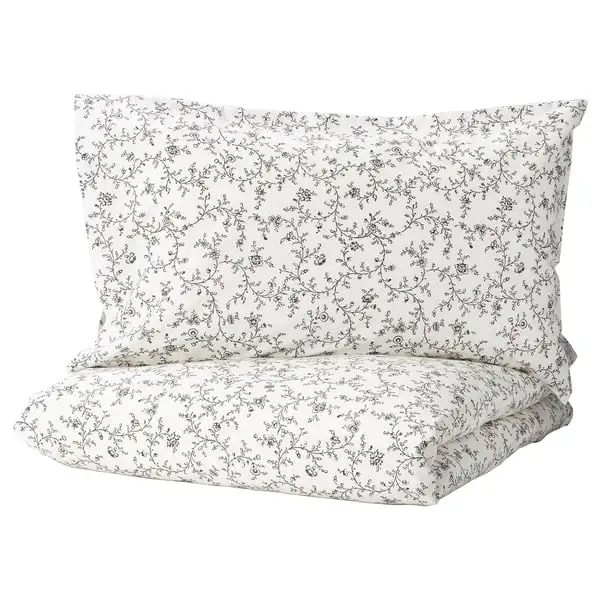 KOPPARRANKA quilt cover and 2 pillowcases, white/dark grey, 50x80 cm