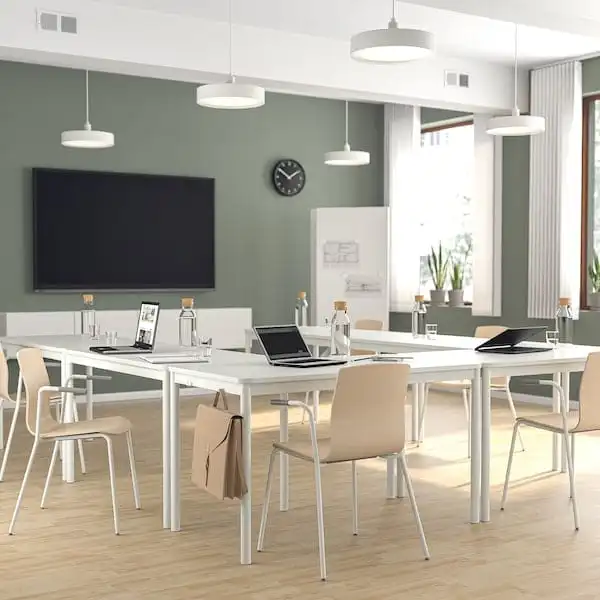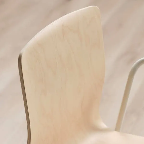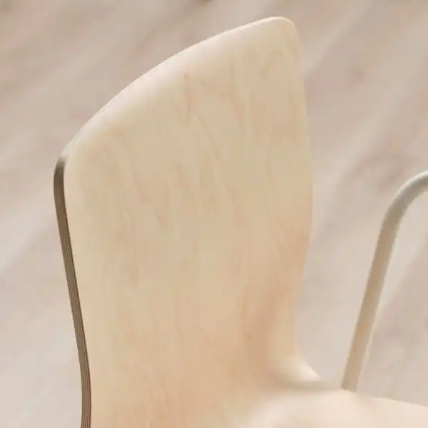 Conference chair with clean Scandi-design in natural, light birch veneer. It’s sturdy yet lightweight and stackable to save space but can also be hung on the table for easy cleaning. 10-year guarantee.