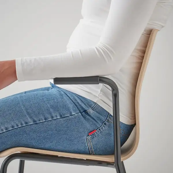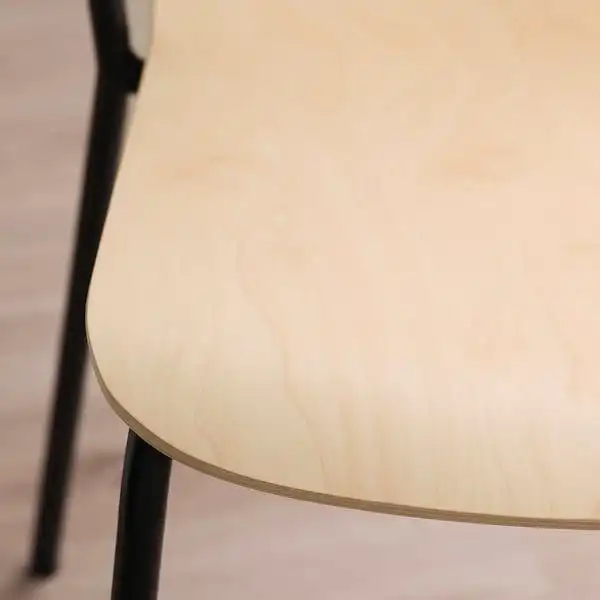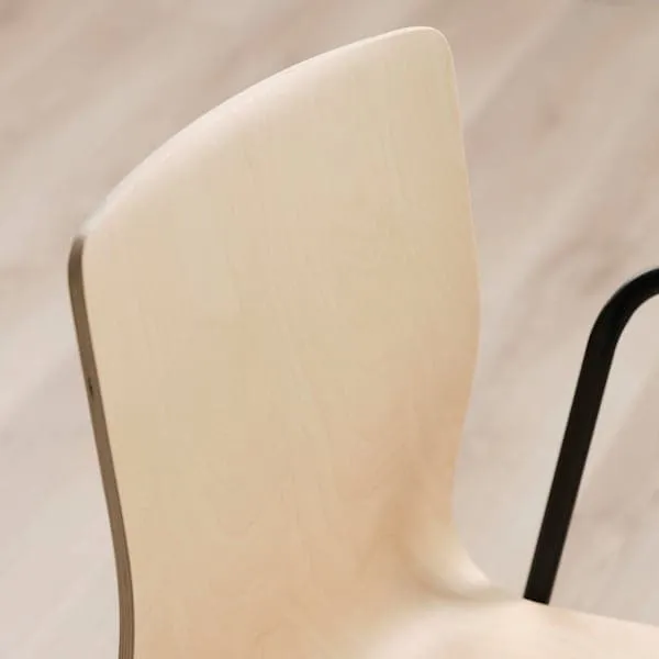 Meeting chair with a linear Scandinavian design, made of birch veneer. It is durable yet lightweight and stackable, so it does not take up space when not in use. It can also be hung on the table, so it is easier to clean the floor. 10-year warranty.