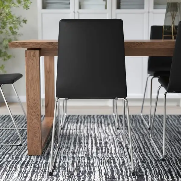 Ideal for all the activities of the day, the black LILLÅNÄS chair combines comfort and modernity. The upholstered seat is contoured to reduce pressure and the flexible backrest promotes relaxation. The upholstered fabric cover can be wiped clean.