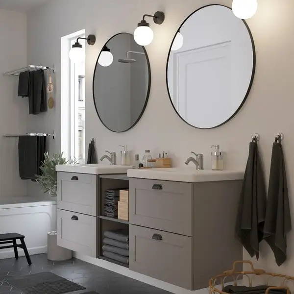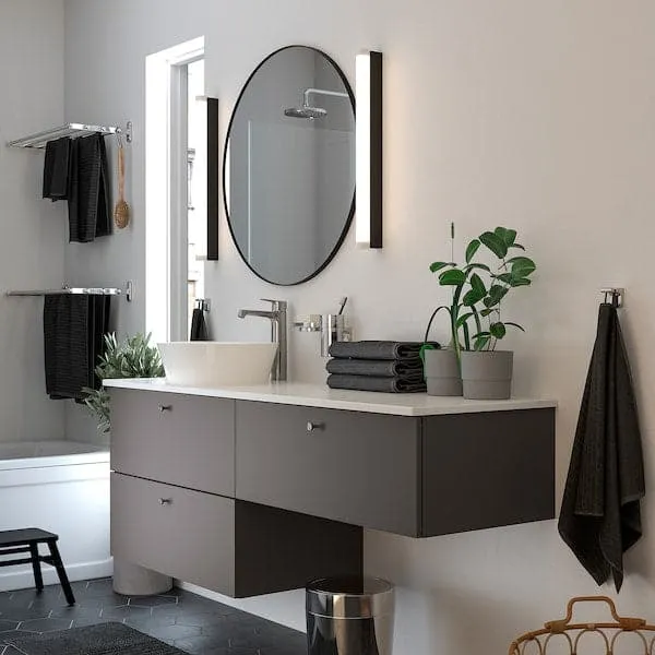 By decorating with mirrors, you add depth to a room and give it more life. The round LINDBYN mirror has a soft expression and the black frame and neat design feel elegant.