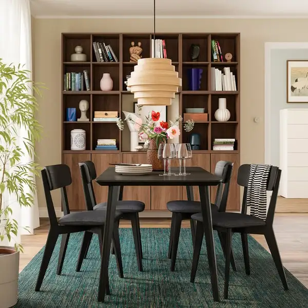 Beautiful in its simplicity with a warm wooden look in black. The innovative construction is very sturdy and with just a few clicks, the table is assembled and ready for use.