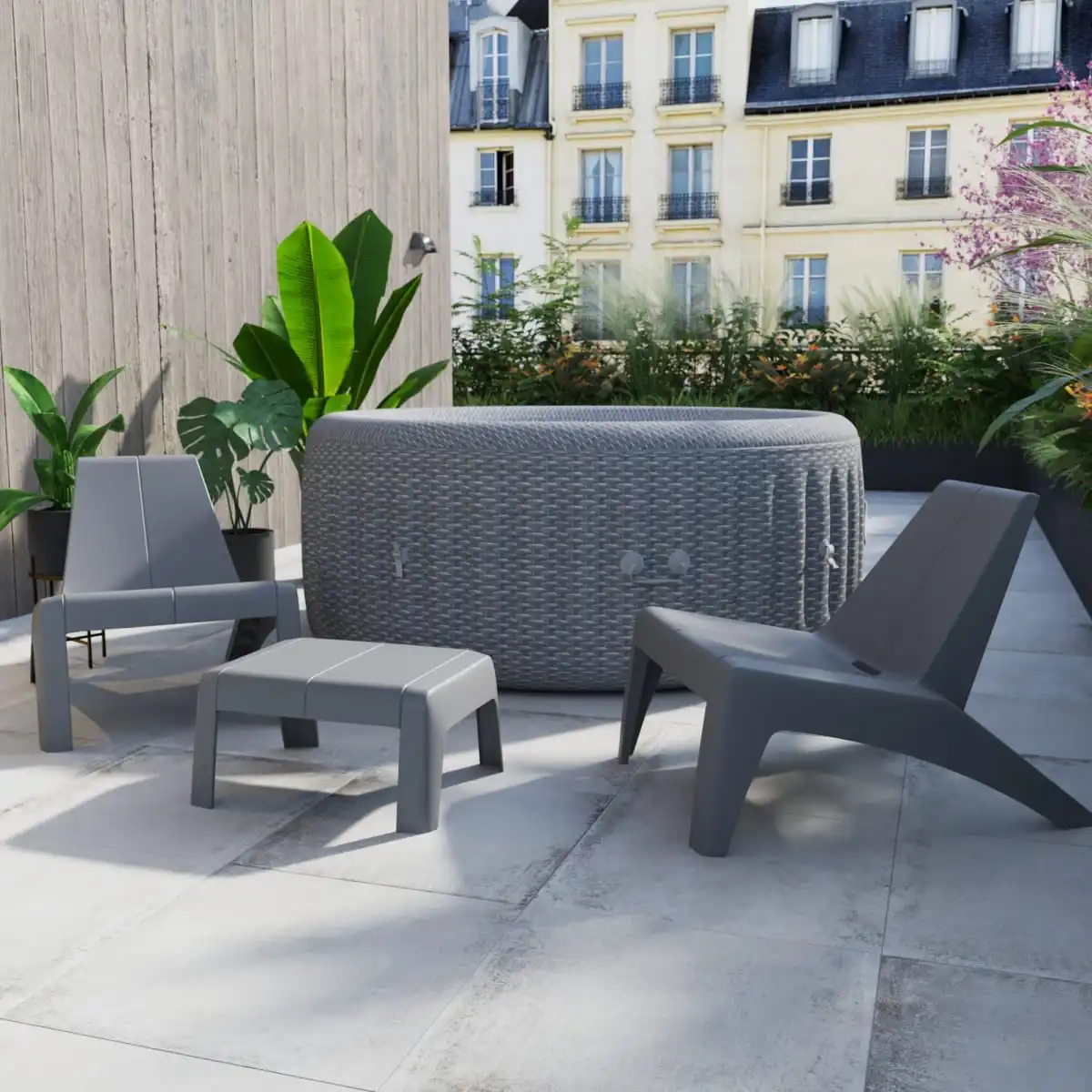 Outdoor coffee table Halios NATERIAL gray/silver resin structure and surface 43.18x47.77cmIdeal to place by the poolPractical and easy to maintain: a damp cloth and a neutral cleaning product are sufficient for its cleaning.Durable and practical coffee table, a simple protective cover is enough to protect it from winter dirt. Environmentally friendly: this coffee table from the Halios range is made in Europe, with a guaranteed minimum of 75% recycled plastic. It is also completely recyclable.