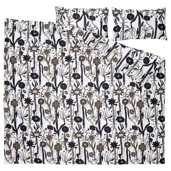 LUNDSKAFTING duvet cover set with twisting botanical pattern reminds of an exotic flowerbed gone wild. The durable, percale-woven cotton/lyocell blend breathes and provides crisp and fresh comfort.