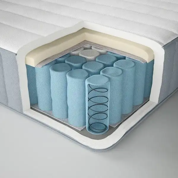 A comfortable combination – LYNGÖR bed base and VALEVÅG mattress. The bed base has flat slats with an even surface for the mattress, while the mattress has pockets springs and 5 comfort zones.