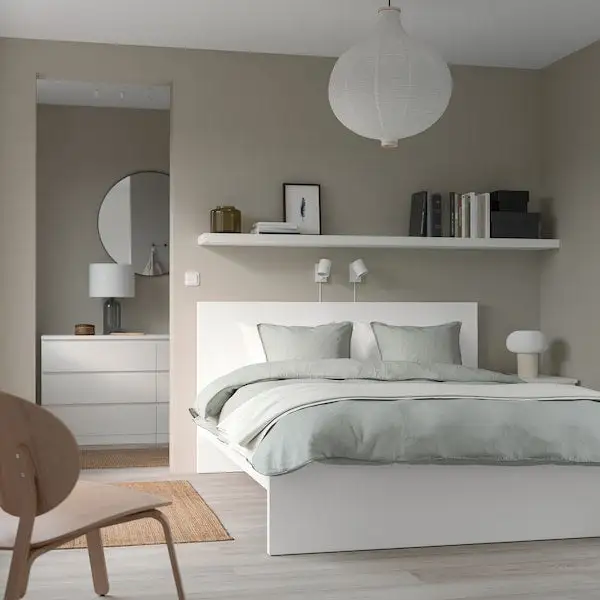 A clean design that’s just as beautiful on all sides – place the bed freestanding or with the headboard against a wall. If you need space for extra bedding, add MALM bed storage boxes on castors.