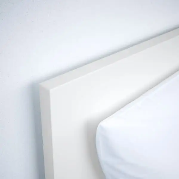 A clean design that’s just as beautiful on all sides – place the bed freestanding or with the headboard against a wall. If you need space for extra bedding, add MALM bed storage boxes on castors.