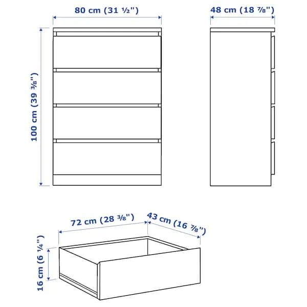 A clean expression that fits right in, in the bedroom or wherever you place it. Smooth-running drawers and in a choice of finishes – pick your favourite. Psst! Please attach to the wall.